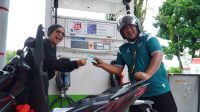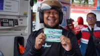 Bagi-bagi voucher di Red carpet pengisian BBM jenis Pertamax, dengan self service. Para manajemen Patra Niaga memberikan edukasi dan membagikan hadiah kepada para pengendara yang lagi isi BBM di SPBU Sepinggan.