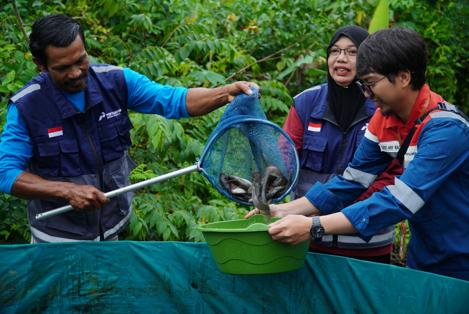 Kolam bioflok menjadi bukti nyata inovasi pertanian terpadu hasil pendampingan CSR Pertamina. Terdapat 7 Kolam Ikan air tawar.